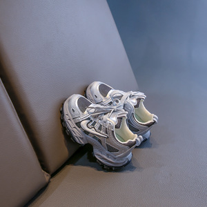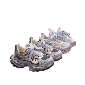 魔术贴厚底老爹防滑网面2025春秋大童女童透气运动鞋儿童跑步