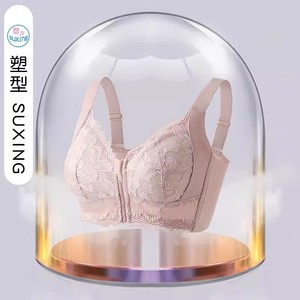 前拉链束胸内衣女士大胸显小聚拢缩胸美背调整型文胸罩大码