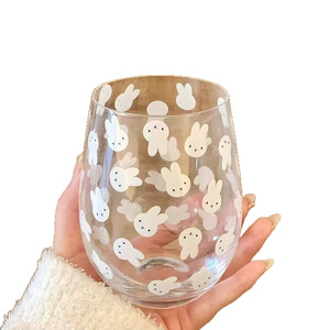 红色蝴蝶结猫咪大肚杯高颜值卡通可爱玻璃杯办公室家用咖啡果汁杯