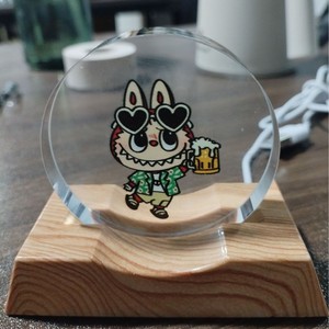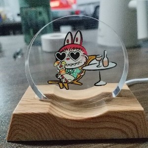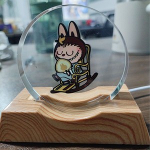 拉布布3d立体激光彩印内雕水晶球治愈系小夜灯发光礼物玄关摆件
