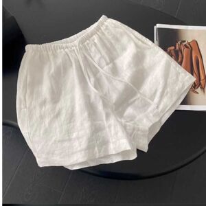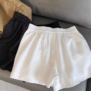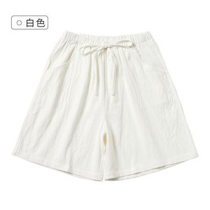 夏季薄款棉麻直筒亚麻休闲短裤白色宽松简约高腰松紧抽绳百搭显瘦