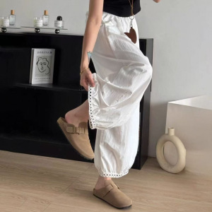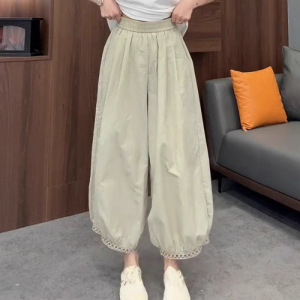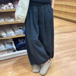 日本製ランタンワイドレッグパンツレディース夏薄いファットガールmmルーズスリミングネイビーブルー9点バルーンカジュアルパンツ