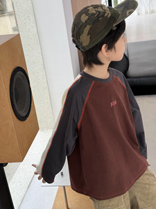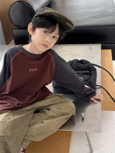 男女童潮流美式复古拼色长袖T恤2025秋季新款简约字母儿童上衣