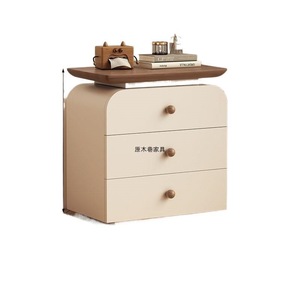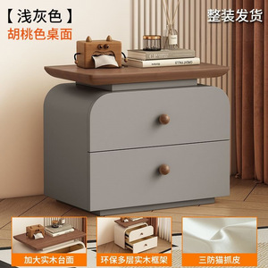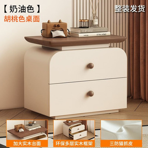 2025新款床头柜免安装中古奶油风简约现代高级感收纳储物卧室爆款