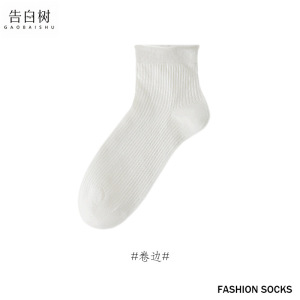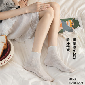 袜子女春夏薄款卷边袜无骨中筒袜ins风蕾丝泡泡花边白色诸暨袜子
