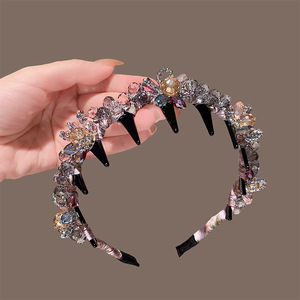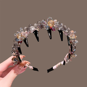 2025新款高级感带齿防滑水晶花朵发箍女压发高颅顶个性头饰