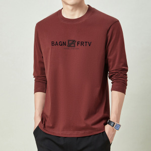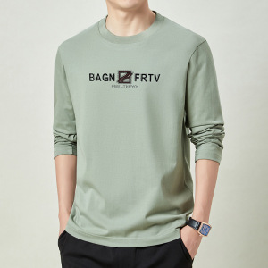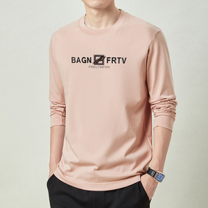 230克春秋季100%纯棉男士圆领长袖T恤全棉男式上衣体恤打底衫卫衣