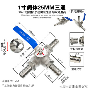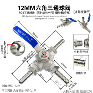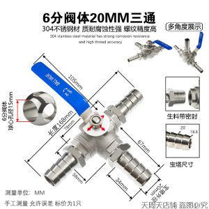 304 ステンレス鋼 T 字型ホースボールバルブ三方ガーデンレザーパイプパゴダジョイント水分離器分流バルブ車