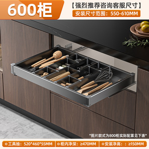 [3層] 600キャビネットスペースアルミプルバスケット+ツールバスケット-460ディープクリスタルディッシュラック
