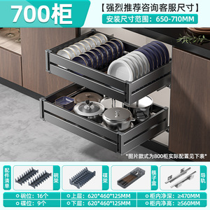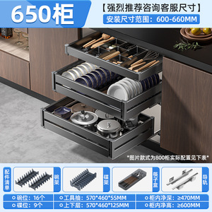 キッチンキャビネット用引き出し式バスケット、ボウルバスケット、スペースアルミ二層収納バスケット、鍋用引き出しバスケット、ディッシュラック