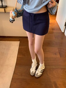 自带弹力安全裤低腰半身裙女双口袋设计休闲包臀短裙