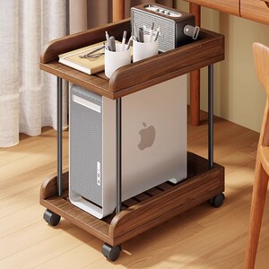 实木主机托架多功能置物架落地多层收纳架办公室文件放置架可移动