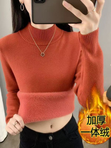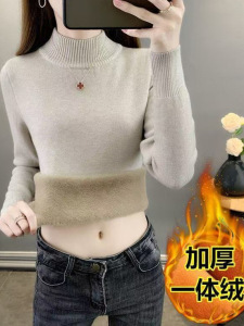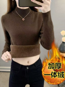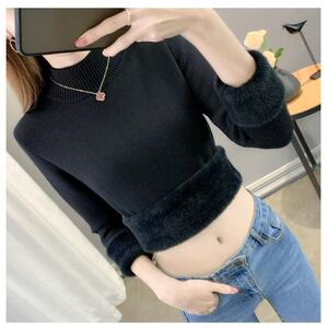 女性用オールインワンベルベットセーター、ベルベットと厚みのある2025年秋冬新作アウターニットボトムシャツ、暖かくスリムフィット