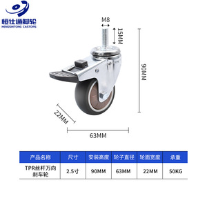 丝杆款*08款静音TPR*2.5寸万向轮刹车轮
