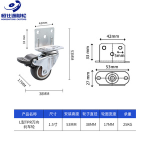 L型款*08款静音TPR*1.5寸万向刹车轮