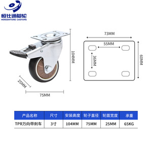 丝杆款*08款静音TPR*3寸万向轮刹车轮