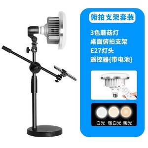手机直播摄影补光灯支架E27美颜神明少女金属遥控LED三色温蘑菇灯