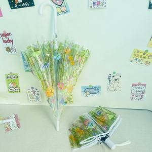 森系花草全自动透明雨伞三折折叠伞直柄伞男女生学生雨伞便携