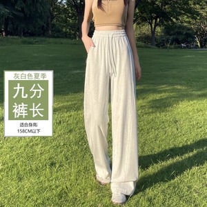 弯刀阔腿裤女夏季薄款高腰显瘦直筒裤休闲防晒冰丝香蕉运动卫裤子