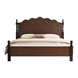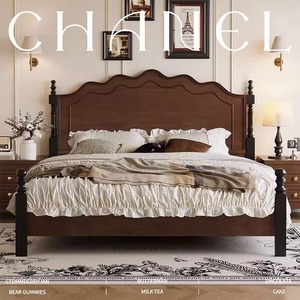 法式实木床现代简约双人床黑色复古1米5软包靠1.8m中古风主卧婚床
