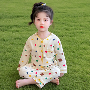 女の子の秋のパジャマ 2025 新しいスタイルの女の子ファッショナブルでかわいい水玉模様のホーム服子供の春と秋のホームスーツ
