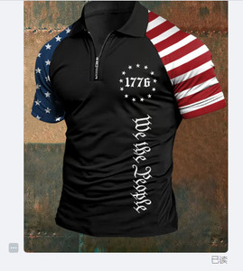 2025跨境热卖新款夏季高端商务潮牌3D数码印花翻领男士拉链POLO衫