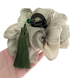 复古流苏云朵网纱抓夹大号发量多新中式气质时尚鲨鱼夹旅行发卡
