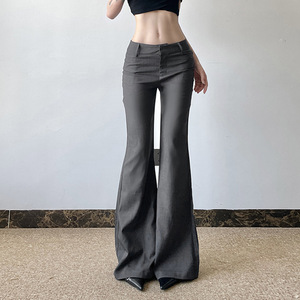 跨境气质通勤风低腰微喇叭长裤欧美灰色辣妹基础休闲西装裤