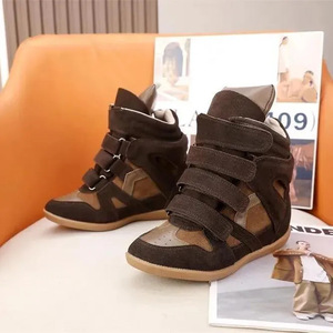 现货2025年新款原标高帮魔术贴真皮软底运动鞋增高鞋男女休闲鞋