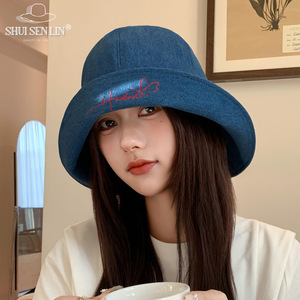 日本製帽子 レディース カフ付き オールドデニム フィッシャーマンハット 大きな頭囲 小さなバケットハット 秋冬万能盆地帽子