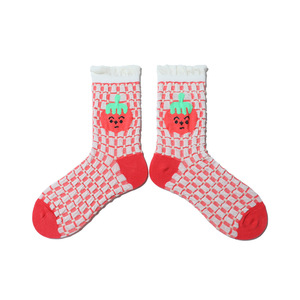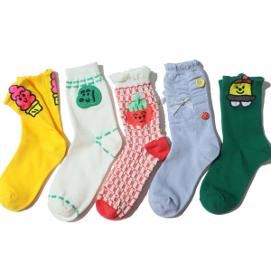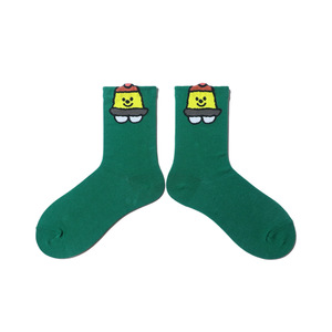 出个门儿吧 yokoneko秋季新品活力卡通趣味彩色格子大狗头女棉袜