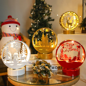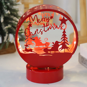 跨境铁艺LED圣诞小夜灯镂空发光工艺品圣诞节桌面橱窗装饰摆件