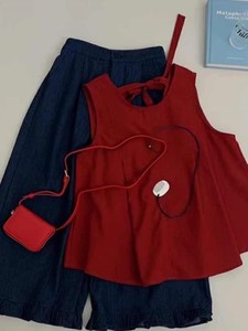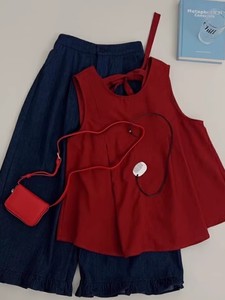 2025年夏新作 小柄なミウミウ風 小香風レッドベスト ワイドパンツ ツーピーススーツ