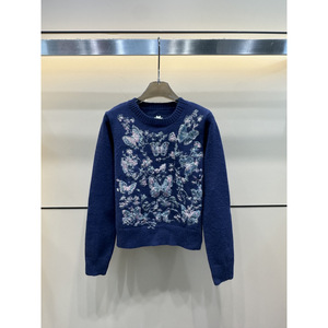25年早秋新款迪家字母重工万绣泡泡袖长袖套头宽松百搭女毛衣
