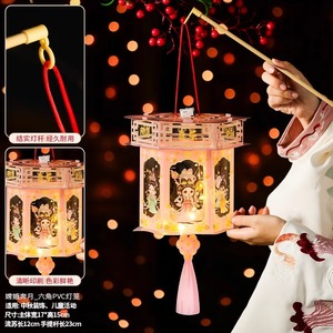 中秋节兔子灯笼2025新款儿童手工diy材料包手提古风发光六角宫灯