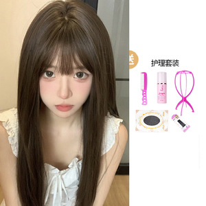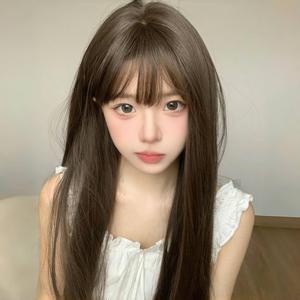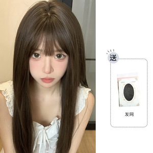 假发女空气刘海Lolita圆脸时尚长直发甜美自然夏天薄款网红全头套