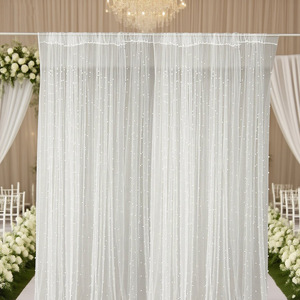 跨境亚马逊户外婚庆穿杆珍珠薄纱装饰派对现场布置装饰背景纱幔