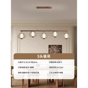 【5头餐吊胡桃木色】L110*W20cm—70W