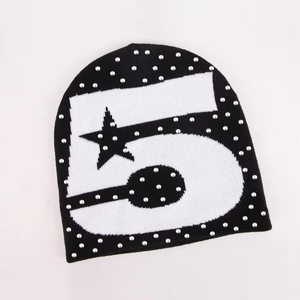 2025年秋冬新款数字字母烫钻针织帽洋气百搭提花时尚户外保暖帽