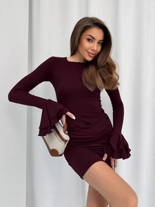 2025秋長袖フリルドレス、高級ショートプリーツスリムフィットヨーロッパとアメリカのホットガールヒップスカート