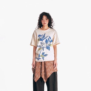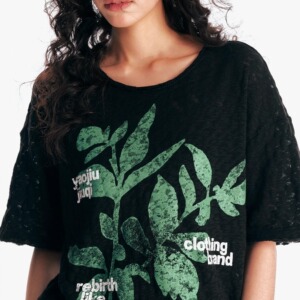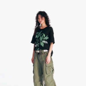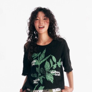 药九玖柒“麻油叶”做旧棉麻短袖T恤显瘦宽松印花上衣/1997邮政局