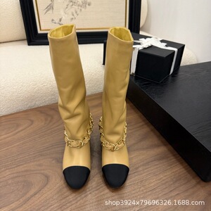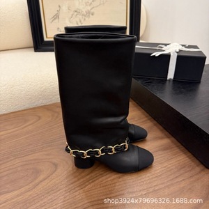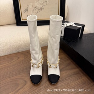 2025秋冬新作女性用小香風ナイトブーツ、本革厚底、スリム、太ヒール、ショートシングルブーツ、女性用膝丈ブーツ