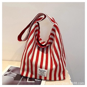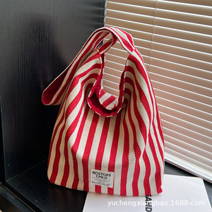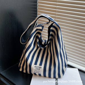 厂家直供2025时尚大容量条纹托特女包双面帆布韩系简约单肩斜挎包