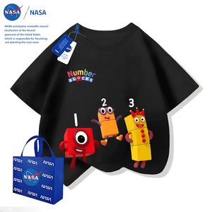 NASA 半袖 T シャツ服 2025 年夏人気のデジタル ビルディング ブロック男の子と女の子用、中型および大型の子供用半袖トップス