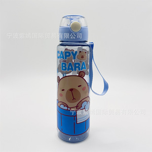卡皮巴拉吸管水杯可爱儿童吸管杯高颜值学生带提绳便携卡通水杯