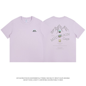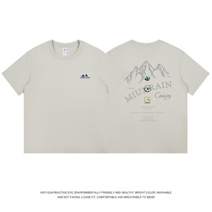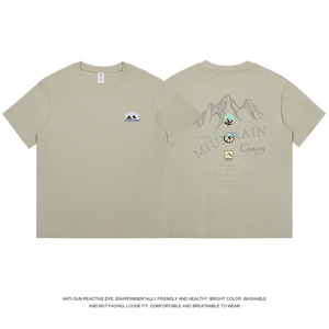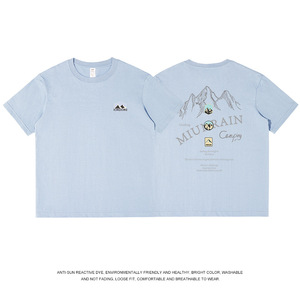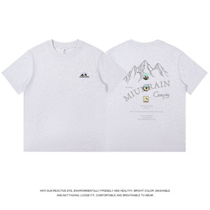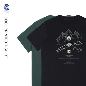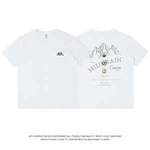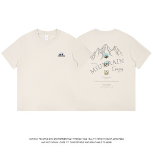 男装230g夏季银山印花T恤男设计感小众短袖圆领宽松打底上衣女ins