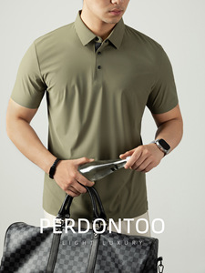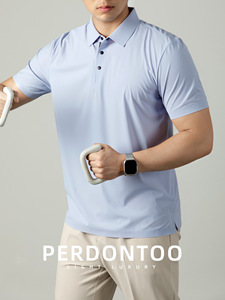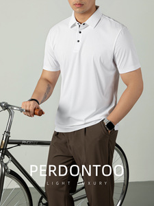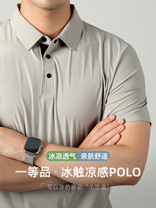 アイスタッチクールメッシュテクスチャーポロカラーメンズ半袖夏ビジネスカジュアルハイエンド4ボタン薄手ポロシャツ