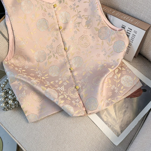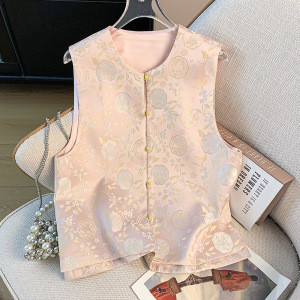 新款新中式气质东方古韵汉服圆领民族风缎面刺绣上衣马甲开衫外套