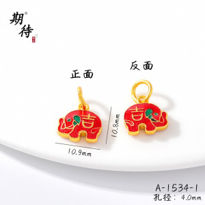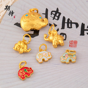 强保色金店同款沙金珐琅彩吉象吊坠手链项链饰品福字大象配件