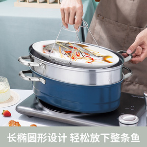 スポット蒸し魚鍋電気蒸し器特大単層専用鍋304ステンレス鋼蒸し鍋家庭用楕円形蒸し魚